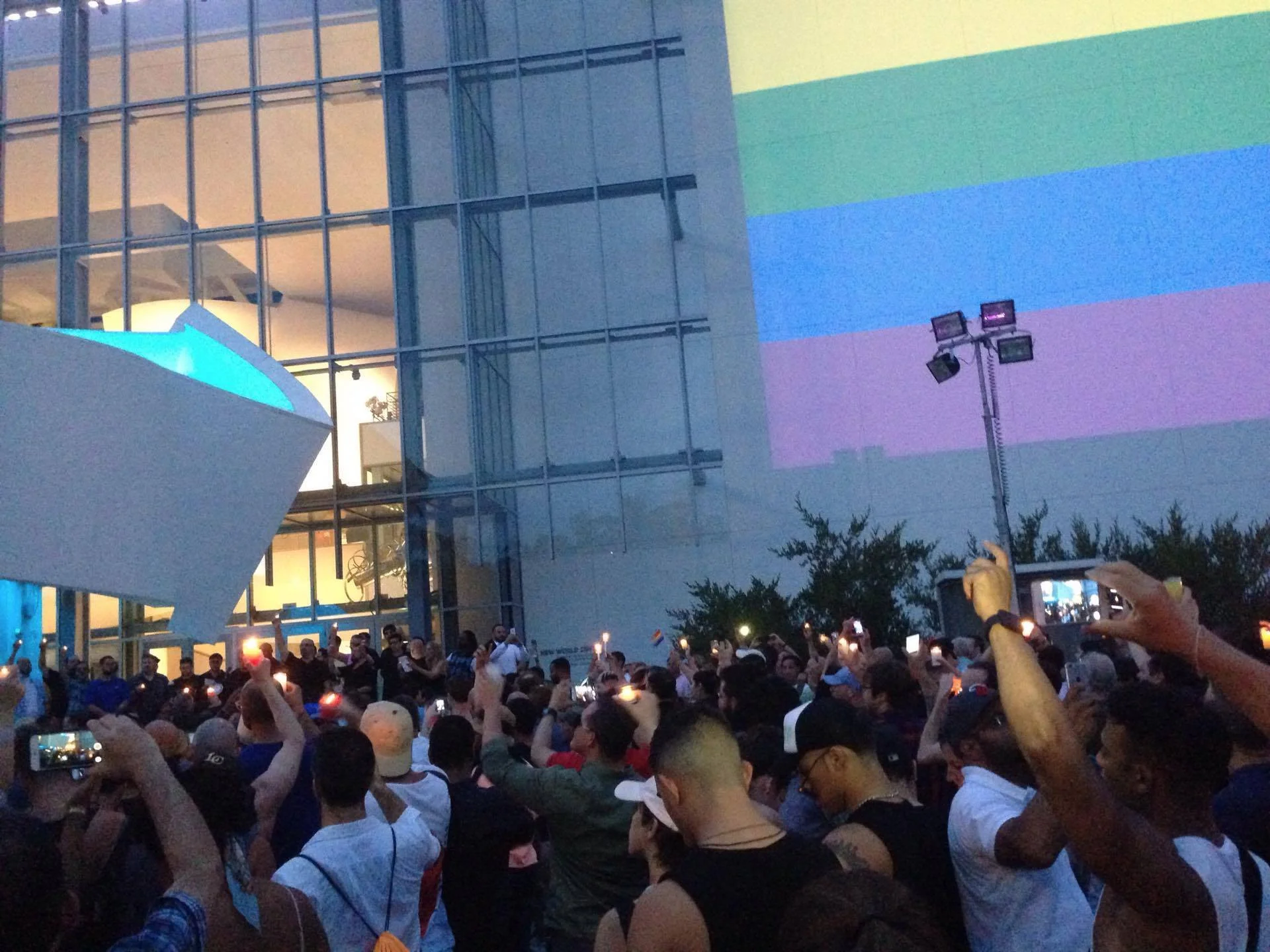 The vigil continued with announcements about the governmental figures in attendance, followed by repeated requests for us to give blood. “Is it legal?” my friend yelled into the crowd. Later, US Representative Debbie Wasserman Schultz took the stage and addressed the fact that it was doubly traumatizing how so many gay men in attendance could not donate blood to the trucks parked outside, even with such a necessity for donors. The crowd cheered, rightly so. It seemed most of the people in attendance were masculine-of-center. For a moment I thought about the assigned male people who do not identify as male feeling even more invisible in Schultz’ call to action. In overt tragedy we can still find ways to exclude our people.