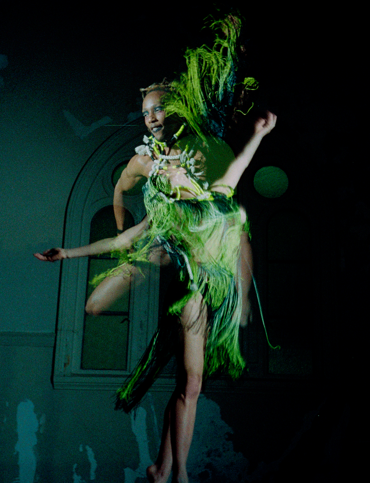 Girouard, who has been in or near NOLA since she was a child, has created a niche in underground fashion, though has been able to express beyond via Brittle Stars as one of the visionaries for the short film. Contributing the bright fringe creations that make for much of the magick in the film, given life by two performers who outside of the rope wear by Neon Zinn and Jami’s fringe, are mostly nude.