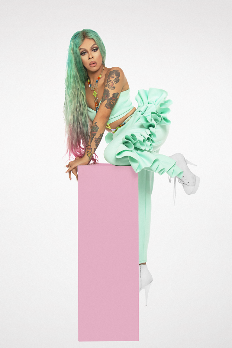 Running with the theme of life as a show, Aja curates the titles and tracks of ‘Box Office’ like the billing on a movie theatre marquee telling a larger cohesive story. “Every single song is titled after a movie, tv show, or an idea and based off of some medium. There’s a track on there called ‘Breakfast at Tiffany’s’ which features Shea Couleé. There’s a track called ‘Kill Bill’ and it’s about revenge. Every song explores a different theme. The order that I put the track listing tells the story like one big show.”